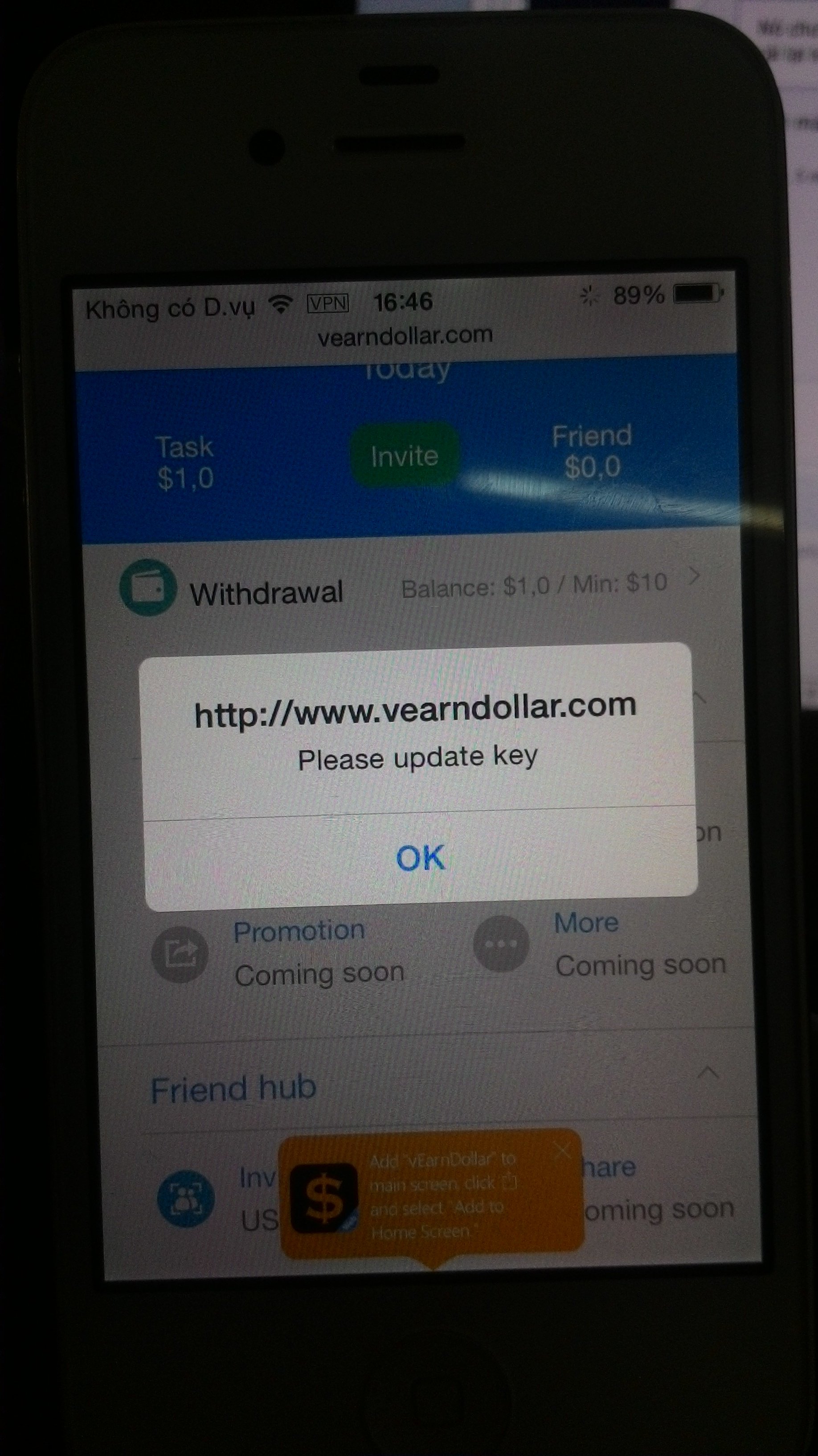 Vừa mới kiếm ra 1 app kiếm tiền trên iphone bằng tải App và nó trả tổng cộng cho 1 App hơn ~$1.2 = $0.5/1app + $0.7/1 tuần mở apps. Phía trên là thành quả 2 ngày kiếm tiền từ vEarnDollar.com