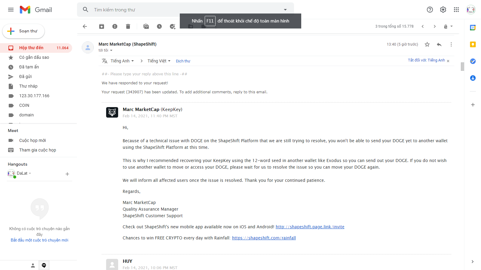 Ví KEEPKEY không rút / trade được DOGECOIN ?