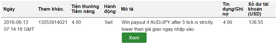Có bác nào muốn ăn chắc mặc bền thì qua bên OptionTrade có loại ladder, một bên khó ăn thì tỷ lệ lên đến mấy trăm phần trăm payout, còn bên chắc ăn thì ăn vài phần trăm%. Mình nghĩ newbie nên tập trung ăn chắc mặc bền ngày kiếm vài chục $ được à.