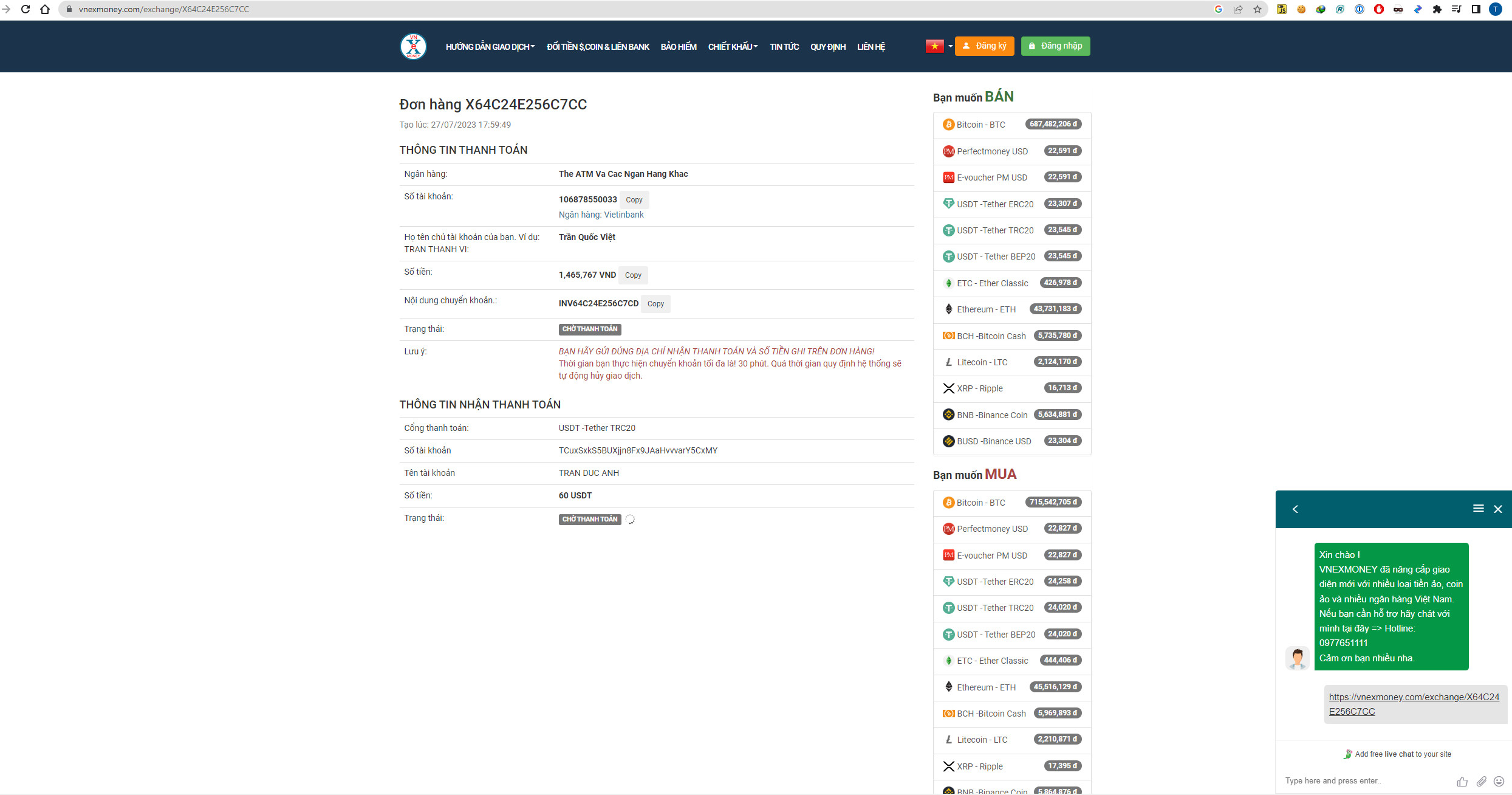 # Hiện tại đơn hàng đã bị xóa và mình vẫn chưa nhận được usdt