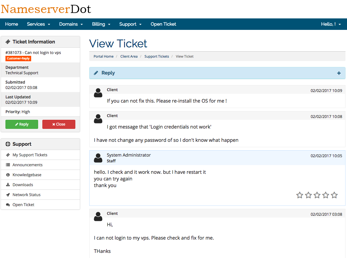 Mình mua vps chạy được 2-3 hôm thì hôm qua ko thể login vào vps, yêu cầu fix hoặc re-install lại hệ điều hành mà im lặng ăn tết lâu thế ?