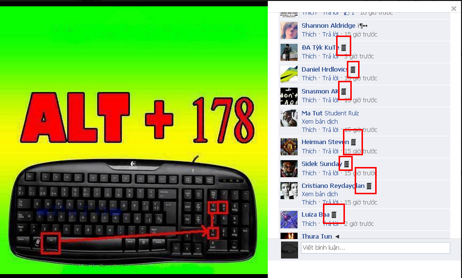 Không nên làm theo bức hình dưới đây, cho dù ở FB,hay ở đâu cũng ko nên bấm Alt + 178 nhé