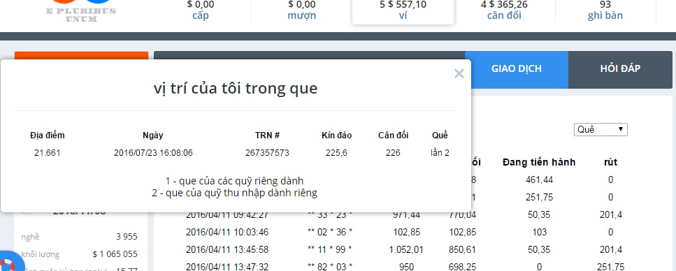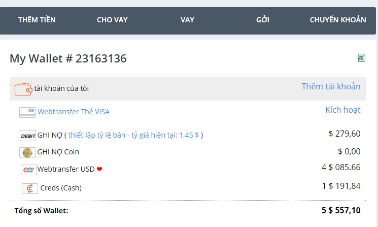 200$ Debit thì có thể cậu sẽ rút sớm được nếu nó rơi vào vốn chủ, còn nếu nó rơi vào lợi nhuận thì chia buồn cùng cậu, có thể phải đợi nửa năm hay hơn 1 năm nữa =)) để check xem của mình là vốn chủ hay lợi nhuận thì cậu vô đây https://webtransfer.com/en/stabfund/transactions còn 1k cred và 4k heart thì nếu heart là số tiền bạn nạp trước 25.07.2015 thì có giá trị ngang cred nha, 5k đổi được sang 25 credit, 1 credit bằng 5 usd