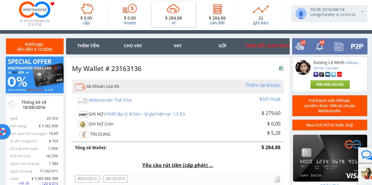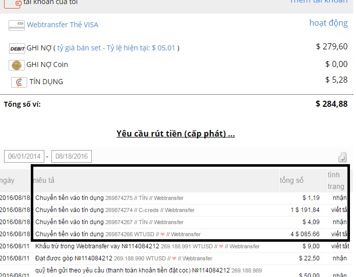 Visa limit 2,500 là xài xong rồi vứt, vứt xong chưa chắc còn cái j để xài. Hix (lưu ý ko chỉ tính deposit mà còn tiền send cho vay và khi tiền vay về tăng số dư vào thẻ, hay send thành viên này sang thành viên khác)