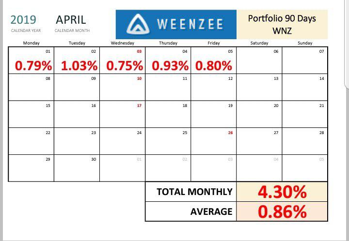 Cập nhật lợi nhuận ngày 05/04/2019 khi đầu tư tại Weenzee