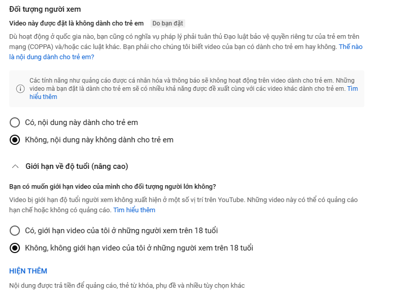 Chả là e đang tập tành làm du tút ber, video e làm về dạng kiến thức có thể cho cả trẻ em lẫn 18 plus xem đều được, mà trong Du Tút nó lại có mục chọn "dành cho trẻ em" và "dành cho người lớn"