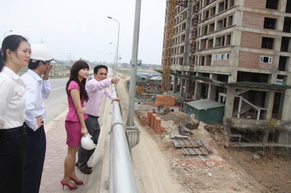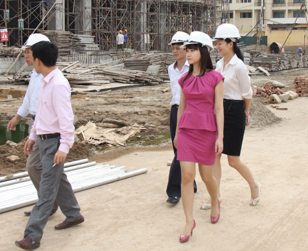 Ảnh nữ chủ tịch HĐQT Tô Linh Hương đi thăm và kiểm tra về tiến độ thi công