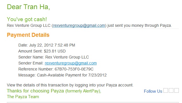 View the details of this transaction by logging into your Payza account.