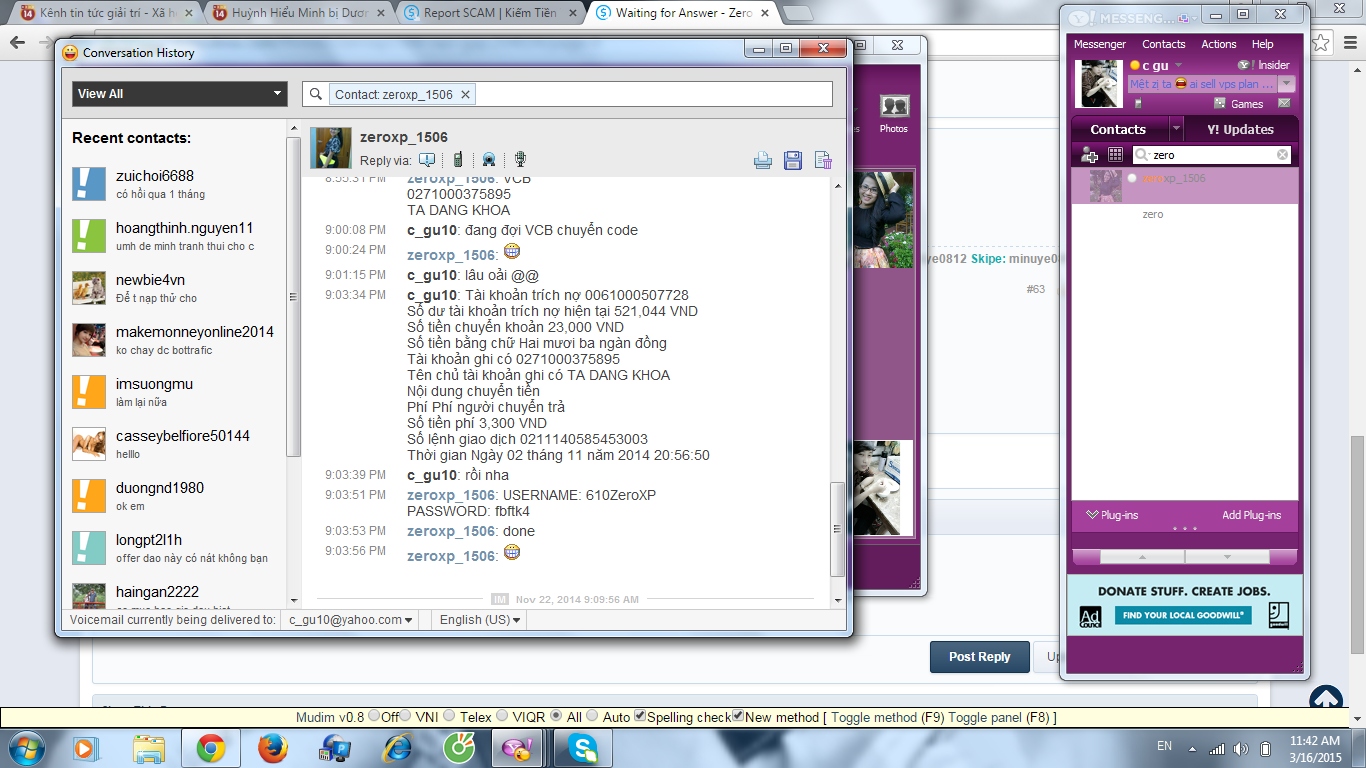 trước có giao dịch một lần, có số VCB , không biết phải tk của chú ấy không , cung cấp được cho thớt được cái stk thôi à![]()