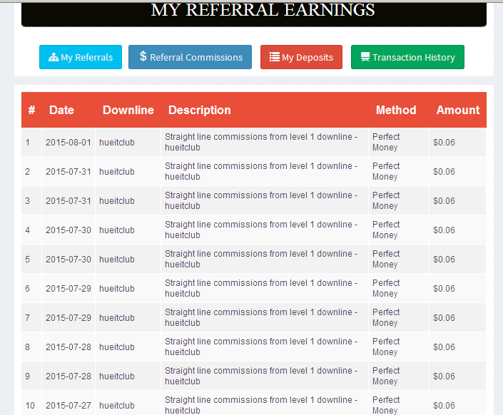 - Description: Straight line commissions from level 1 downline - hueitclub