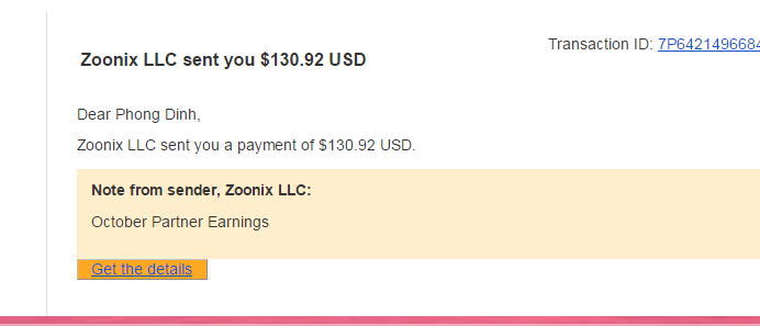 Tin mừng là đã nhận được thanh toán của tháng 10/2015 qua Paypal