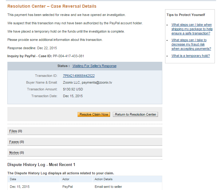 Tuy nhiên thanh toán đang bị Paypal tạm giữ để điều tra